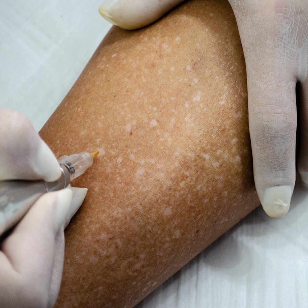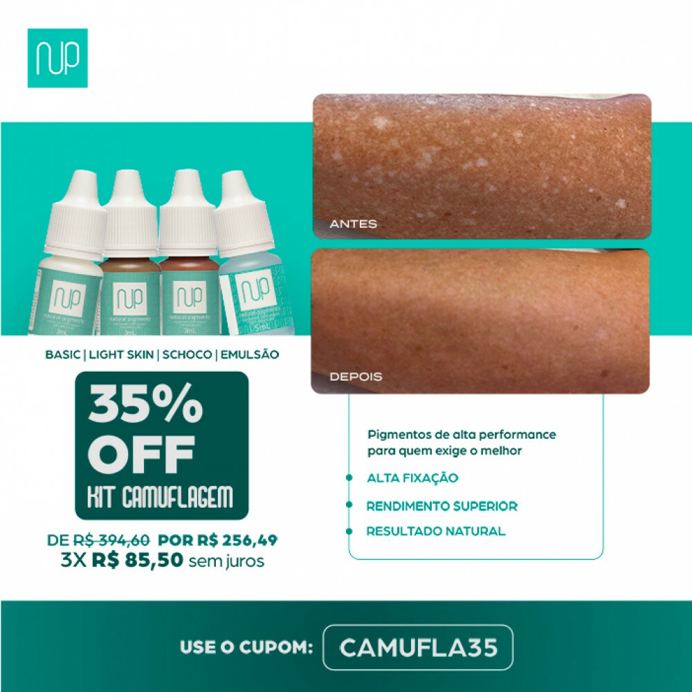 Com um sistema de mistura versátil, o kit facilita a aproximação do tom da pele natural, reduzindo o contraste entre a área tratada e o tecido ao redor, e favorecendo uma camuflagem mais uniforme e natural.